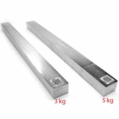 Masse en acier chromé de 5 kg munie d’un patin en caoutchouc. Dimension : 3 x 4 x 53,5 cm